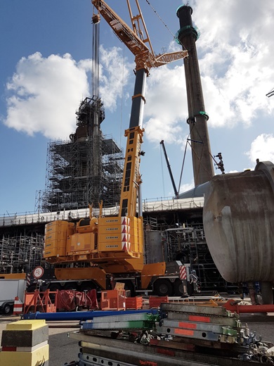 Um die zum Teil mehrere Tonnen schweren Anlagen zu bewegen, ist zudem schweres Kran- Gerät erforderlich.